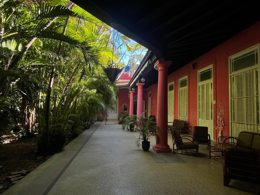 I still wasn’t ready to give up my search for books, so I asked a man on the street whether there was, by any chance, another library nearby. He pointed me to one a few blocks away, which I discovered — to my surprise — was the centre for the study of José Martí’s writings, or Centro de Estudios Martianos. As I walked in, escorted by an employee through a couple of corridors and a large inner patio, it felt like entering an ancient, magical place. It was a beautiful colonial house, painted in an elegant shade of dark pink, with finely decorated white doors and furniture, and a few woody Cuban-style sillones (armchairs) in the patio, flanked by a gorgeous small forest of lush tropical plants.